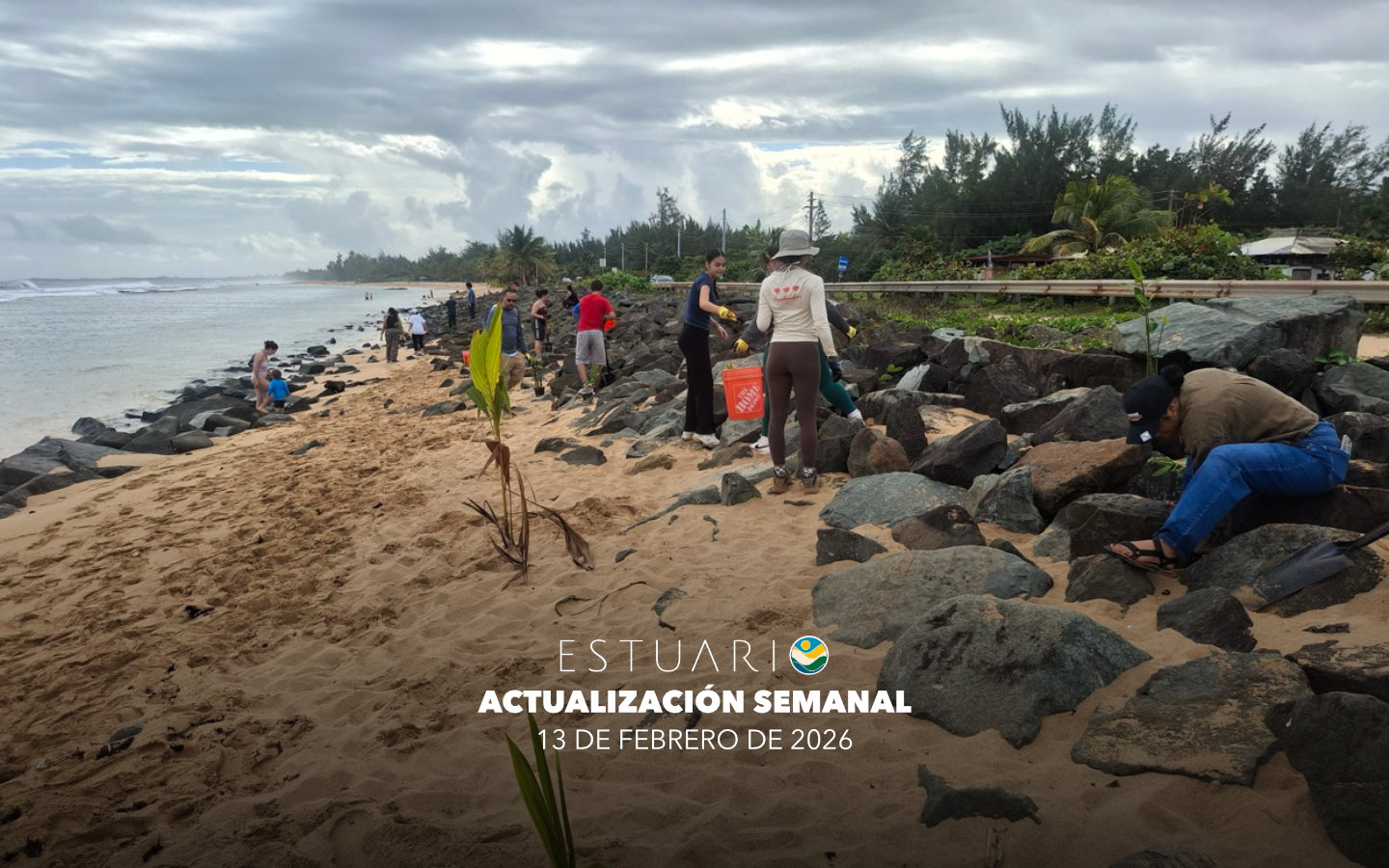 El sábado, 31 de enero, diecisiete voluntarios se dieron cita en Piñones para sembrar unas 309 plantas costeras, entre ellas mangle rojo, mangle botón, habas playeras y palmas de coco. También se recolectaron semillas para futuros esfuerzos de propagación. La siembra se realizó para reforzar la protección natural del litoral y promover soluciones basadas en la naturaleza que complementen la infraestructura existente.